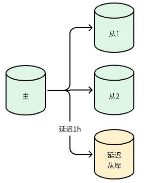 从库故意延迟一段时间再应用主库的二进制日志,提供一个人为的数据恢复窗口,防止误操作。