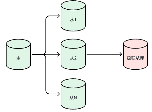主库同步到从库(次级主库),这些从库再同步给其他从库,形成树状结构。