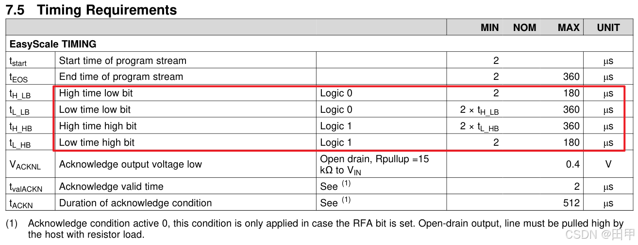 发送完地址的最后一个bit,等待一段时间EOS(小于360us),拉高CTRL(Tstart),开始发送数据字节,发送完毕后等待EOS,总线常高。连接CTRL的单片机引脚配置推挽输出。