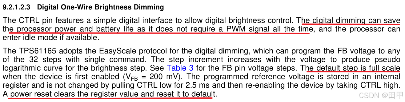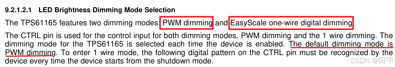 芯片有2种调光模式,一种就是之前使用的PWM调光,还有一种叫做EasyScale 单总线数字调光。