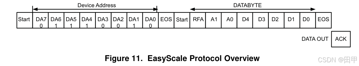有点类似I2C总线。地址固定为0x72。一帧信息为起始+设备地址+结束+起始+数据+结束。