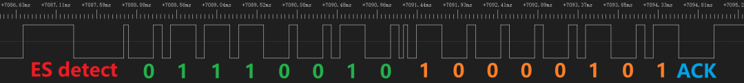 发送完数据后,改成输入模式,此时如果芯片正确响应,会把CTRL拉低,让MCU检测到就可以。检测完毕,将GPIO再切换回开漏输出。使用逻辑分析仪采集波形如下
