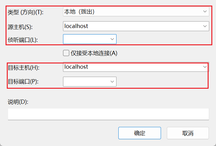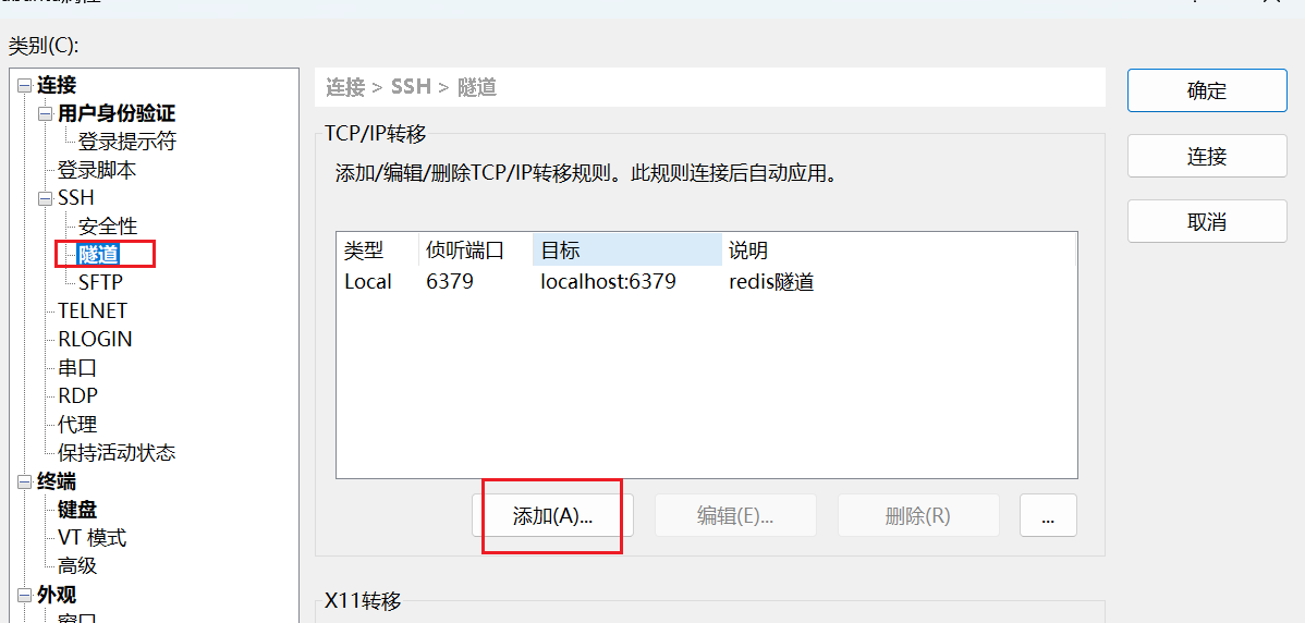 上面的端口填要映射到的本地端口,下边填服务器上 redis 的端口