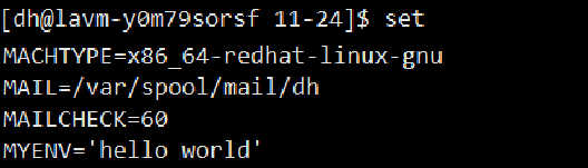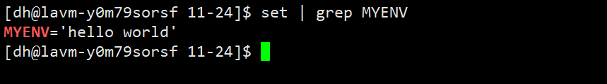 set命令显示所有变量后,配合grep进行过滤,可以快速定位到特定的本地变量MYENV。具体命令为:set | grep MYENV。