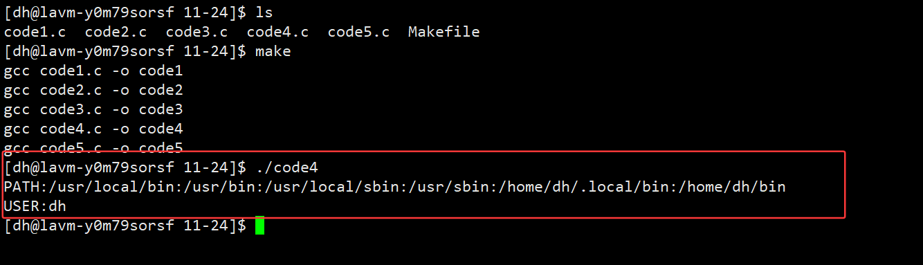 使用代码调用系统调用接口getenv获取PATH环境变量的值和当前登录用户
