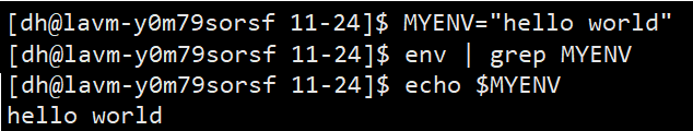 MYENV,是由于无法我们定义的本地变量MYENV由于不是环境变量所以没有被继承。