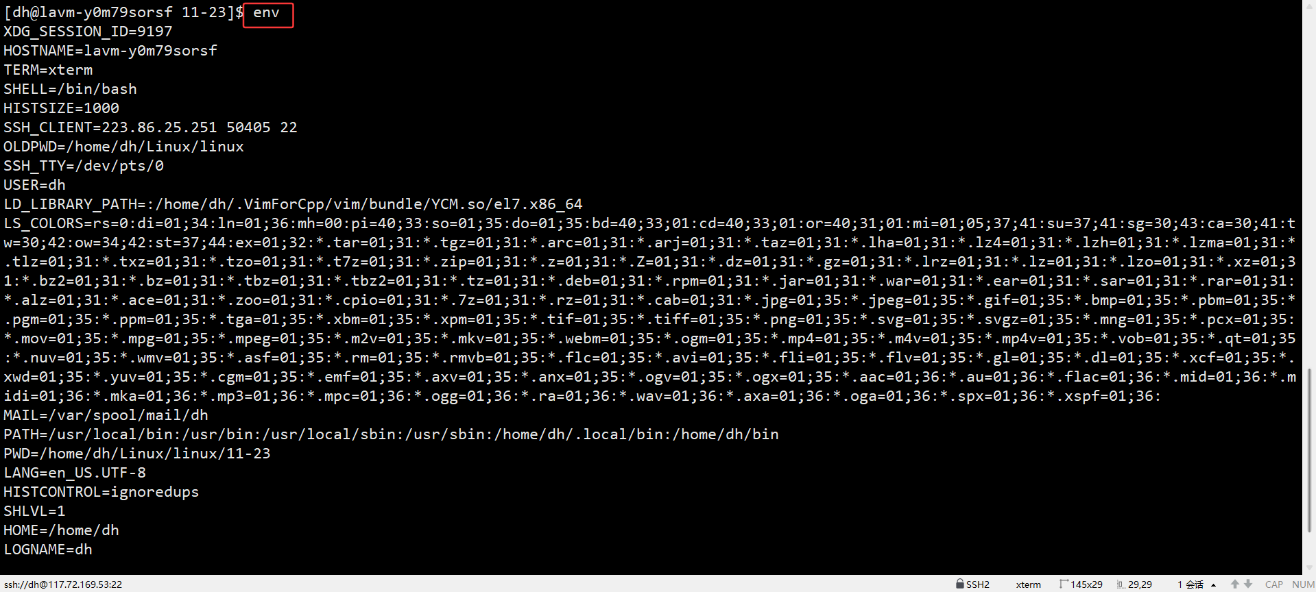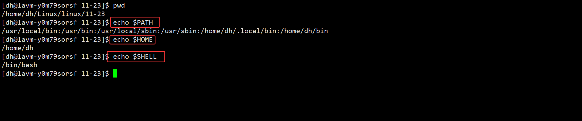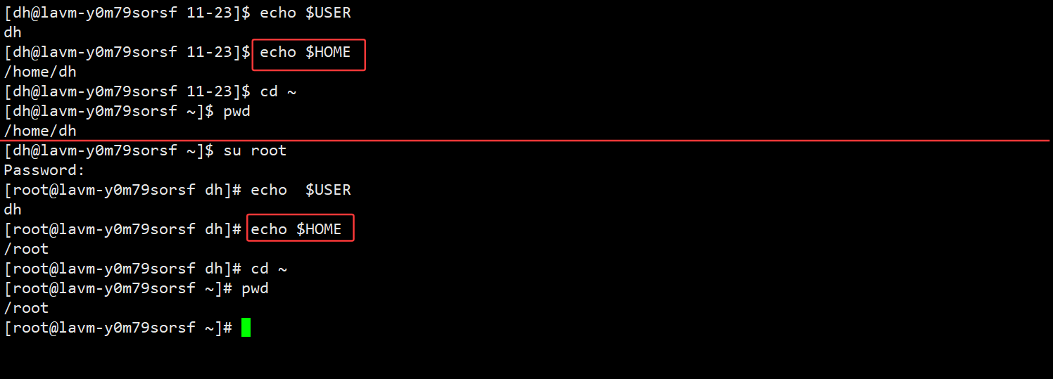 - cd ~进入家目录,这个家目录的位置和HOME指定用户的主工作目录或默认目录相同 ,代表当不同用户登录linux系统的时候会根据不同用户去分配不同的环境变量。
