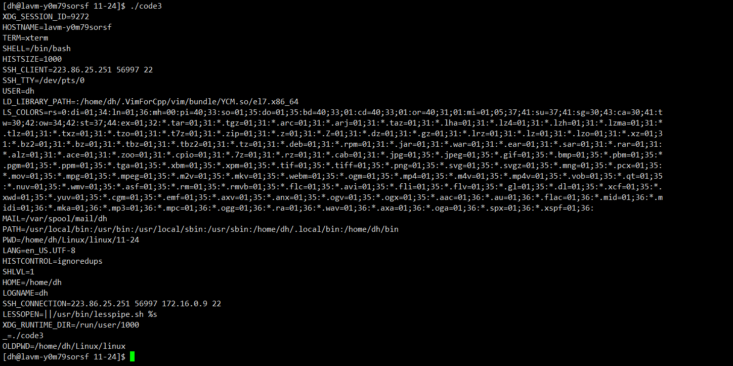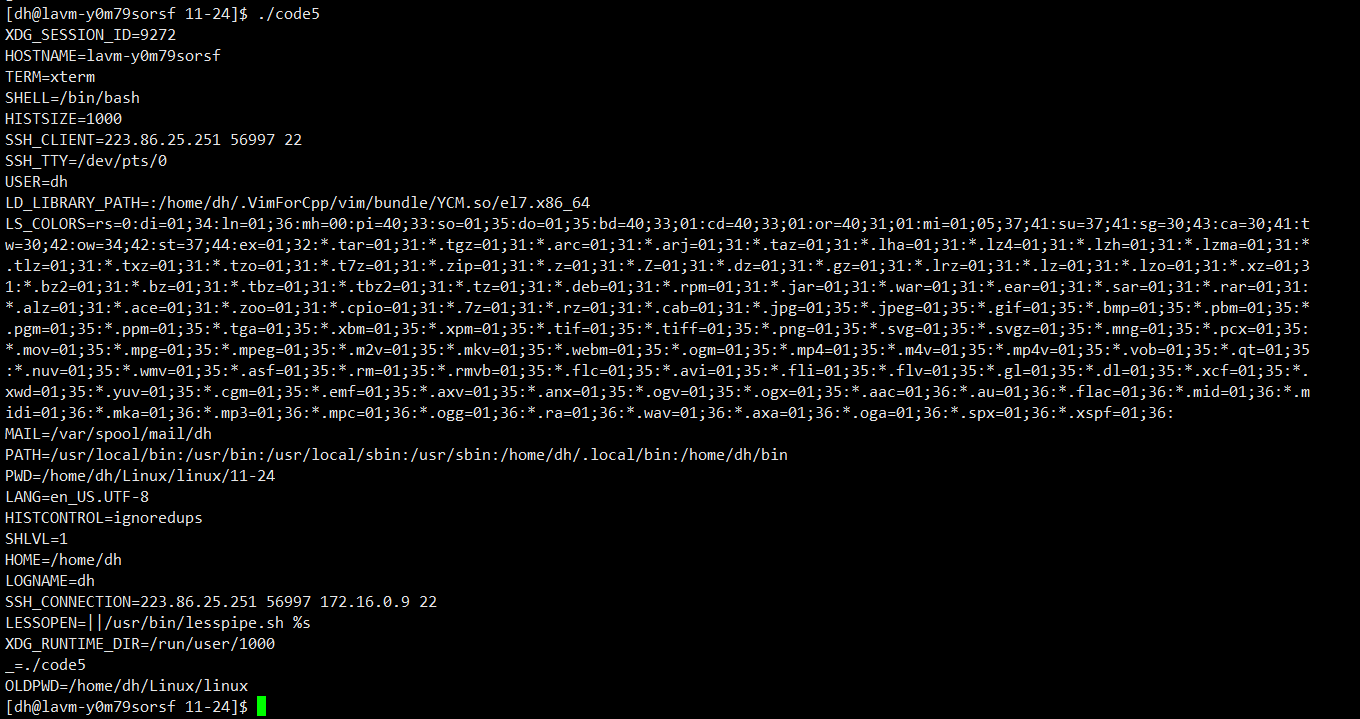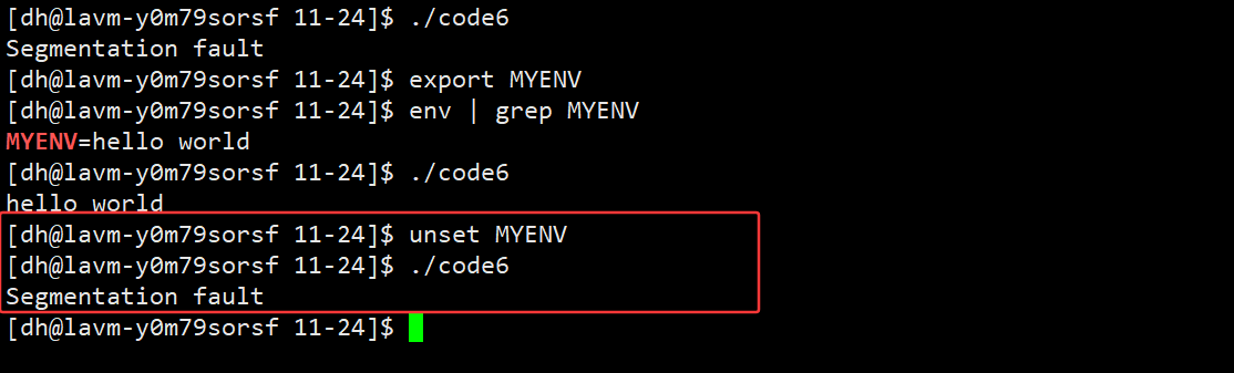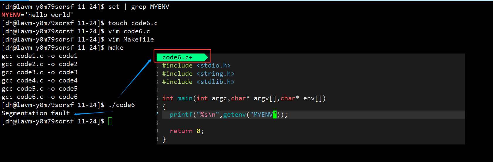 如图此时我们运行自己的程序成功找到MYENV,即子进程继承了fork的环境变量,证明环境变量具有全局属性。