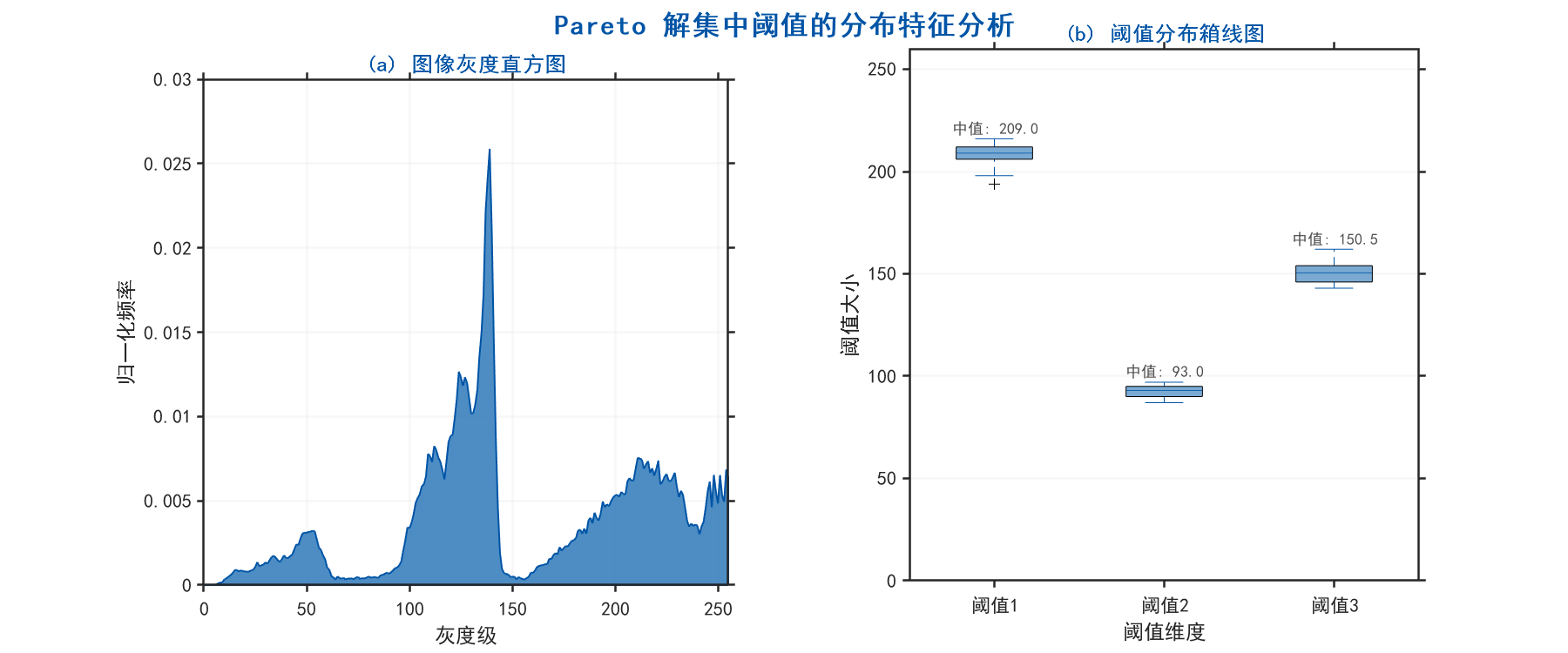用户可从 Pareto 最优解集中根据需求选择一个或多个阈值组,用于对原图像进行最终的多级阈值分割,得到划分为不同灰度区域的最终结果。
