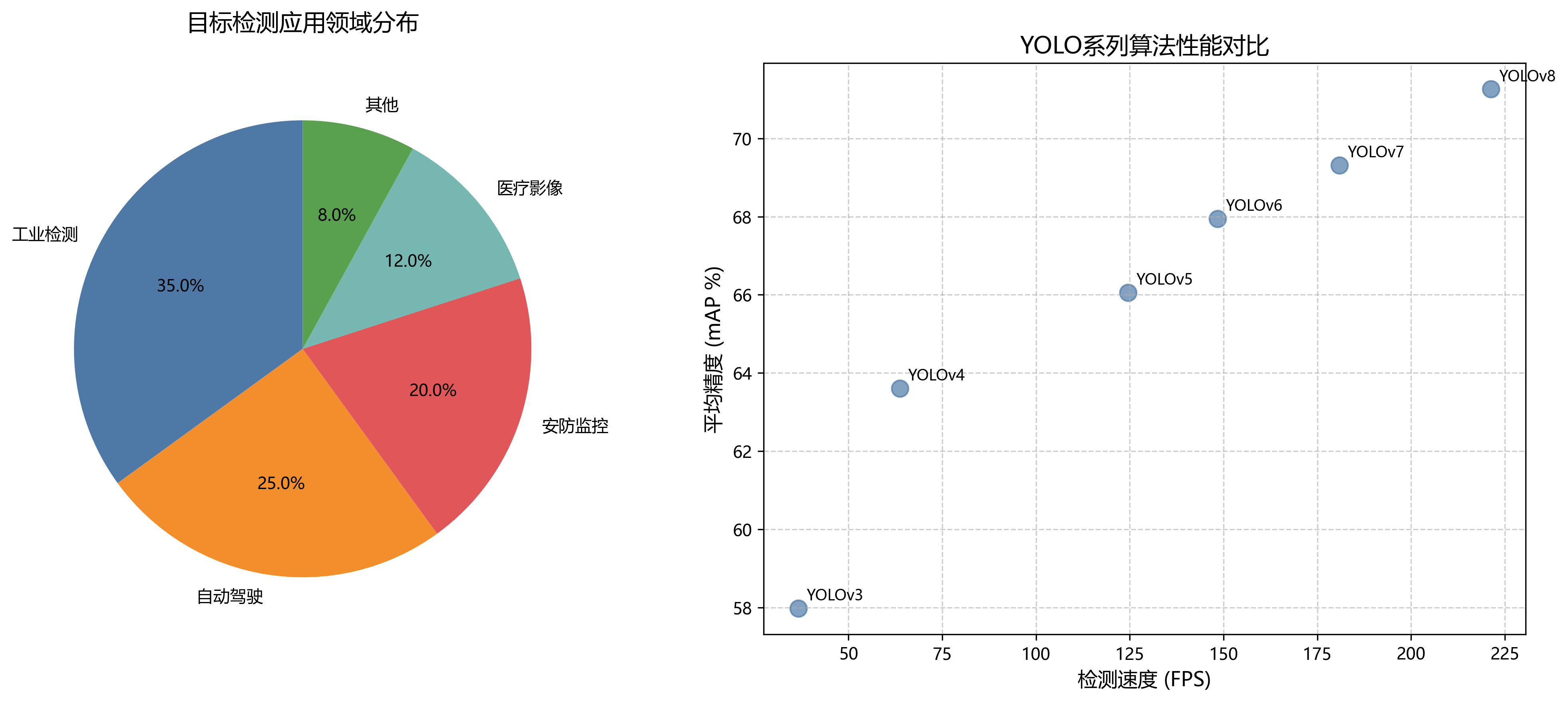 目标检测作为计算机视觉的核心任务之一,近年来取得了显著进展。从传统的R-CNN系列到单阶段检测器如YOLO系列,目标检测算法在精度和速度上都有了质的飞跃。特别是YOLO系列算法,由于其端到端的特性和优秀的实时性能,被广泛应用于各种工业检测场景。
