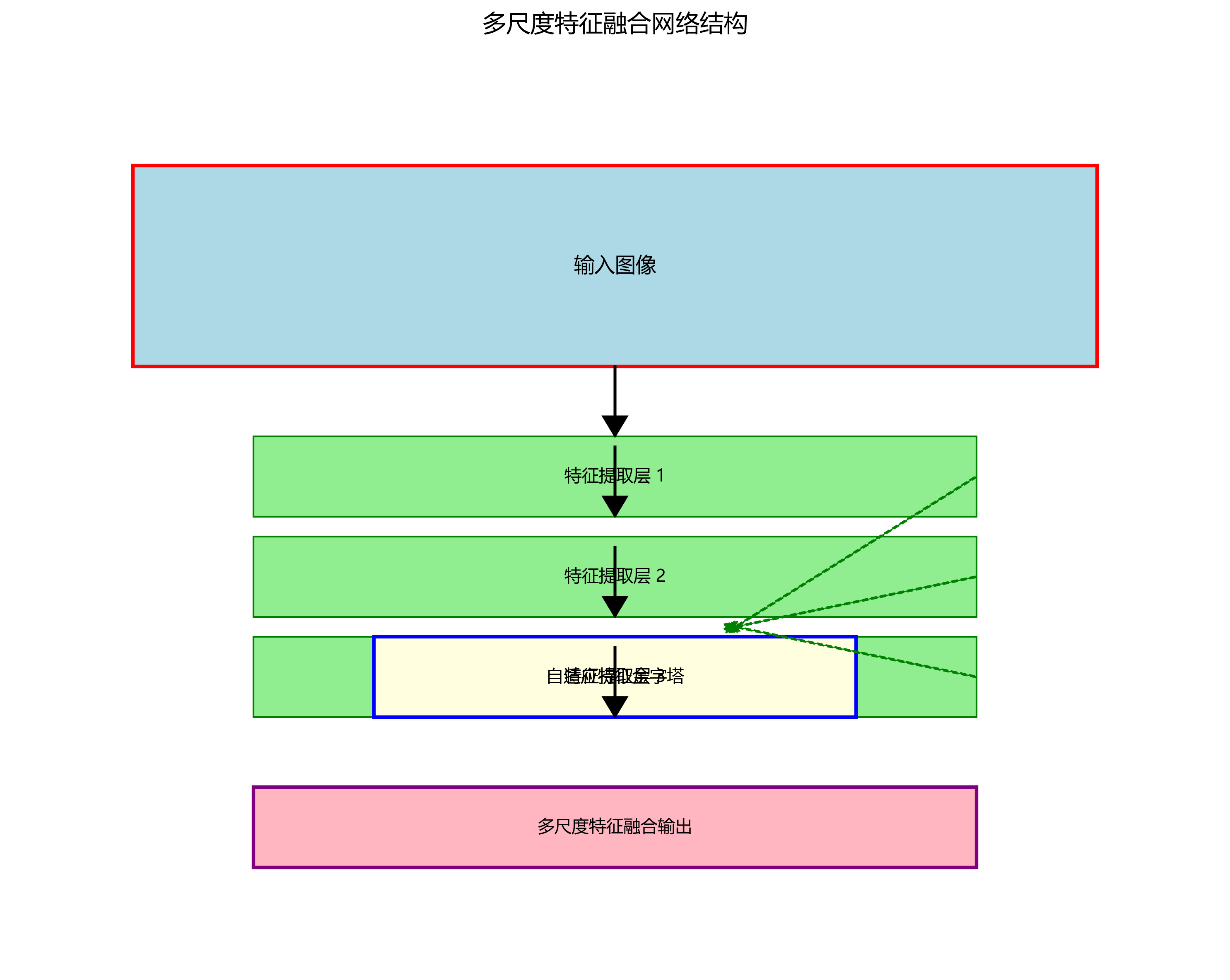 为了进一步提高小目标检测性能,我们设计了多尺度特征融合策略。该策略通过在不同层级引入自适应特征金字塔网络,实现了不同尺度特征的动态融合。具体而言,我们在网络的不同阶段添加了特征融合模块,其结构如下: