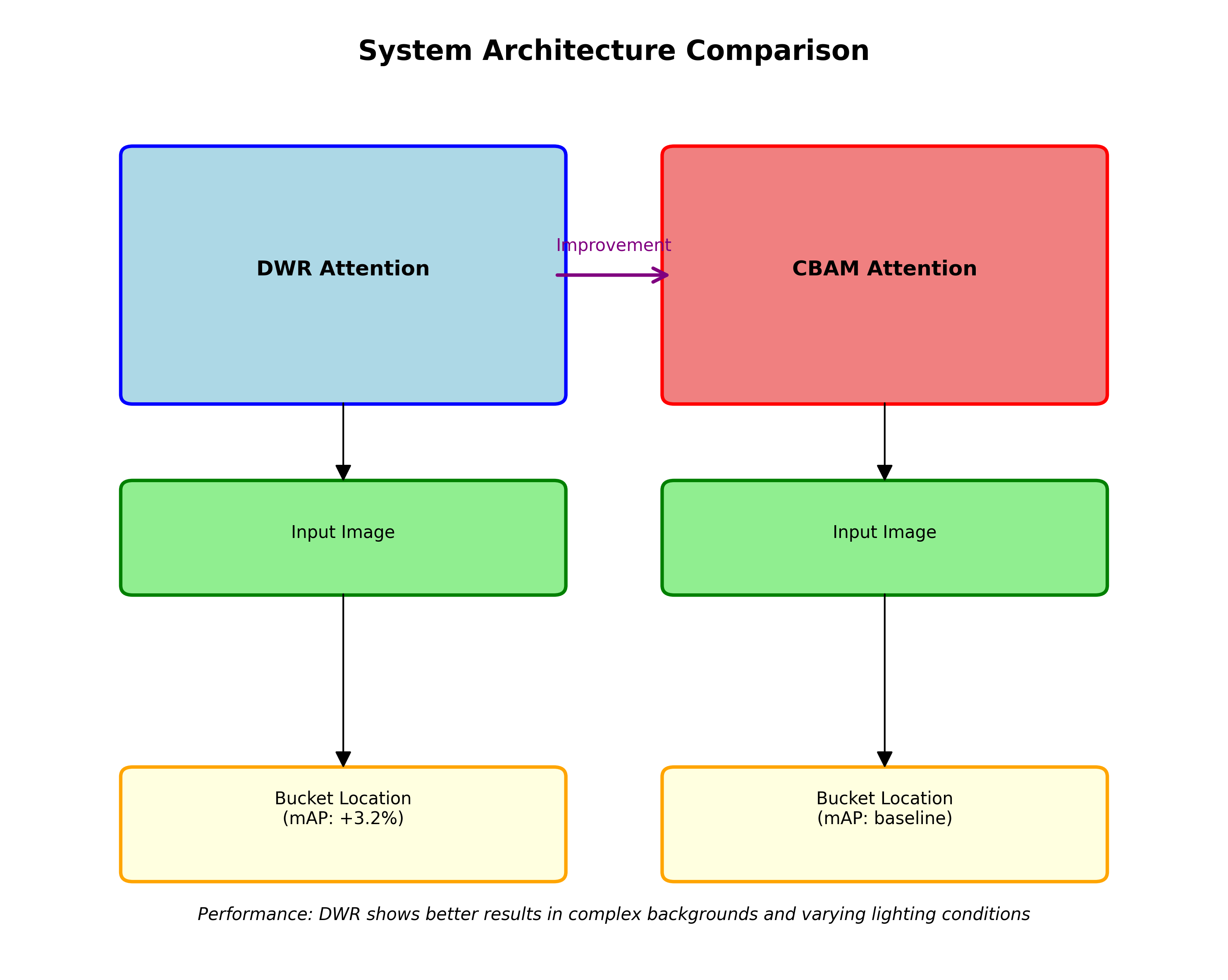 实验表明,DWR注意力机制相比传统的CBAM注意力机制,在铲斗定位任务中mAP提升了3.2%,特别是在复杂背景和光照变化的情况下表现更为突出。