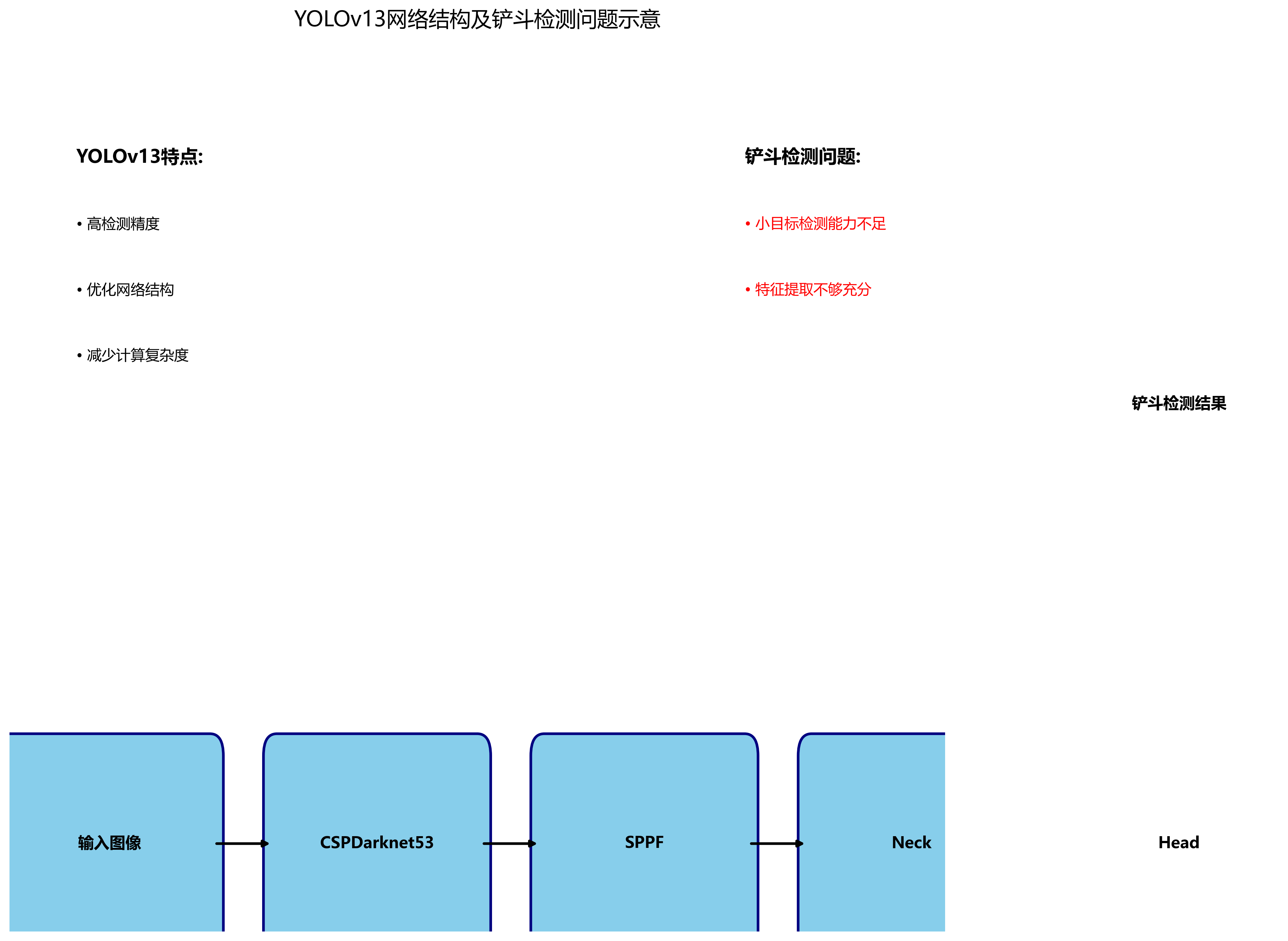 然而,在铲斗定位任务中,原始YOLOv13仍存在一些局限性:对于小型目标的检测精度不足,对复杂背景的鲁棒性有待提高,计算资源消耗较大等问题。