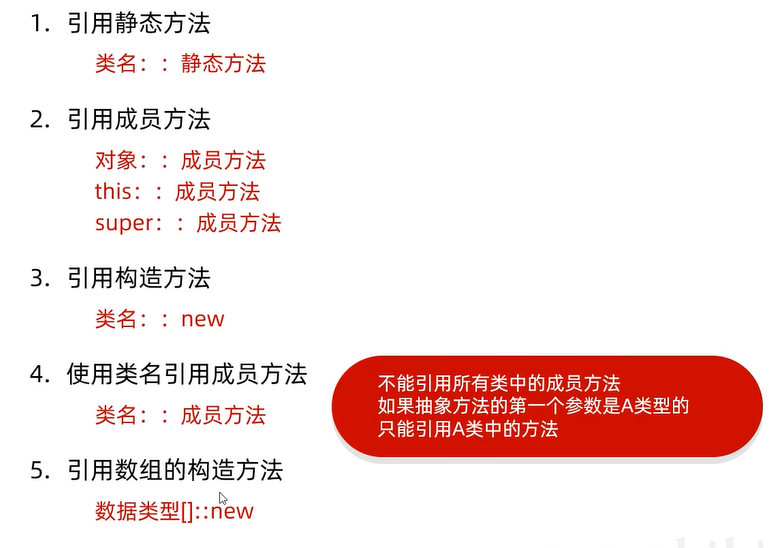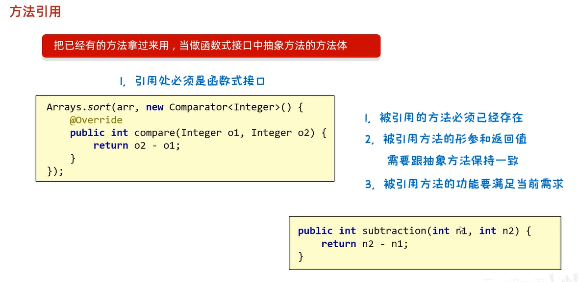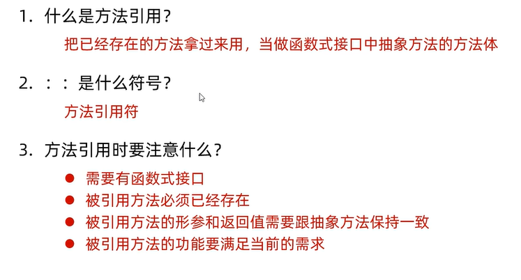 //3、被引用的形参和返回值需要和抽象方法的形参和返回值类型保持一致