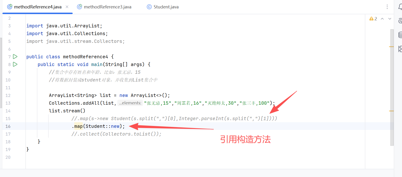 //.map(s->new Student(s.split(",")[0],Integer.parseInt(s.split(",")[1])))