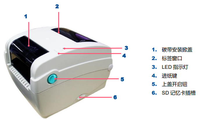 当打印机准备就绪,按一下按键,卷标纸会进到下一张标签纸的前端。