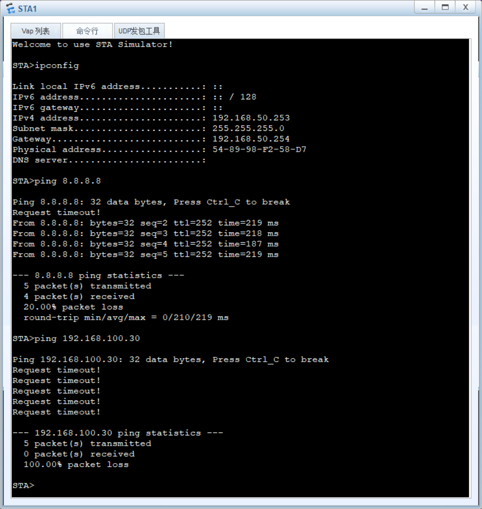 display ap all,查看 AP 状态为 "normal"; - 无线业务测试:STA 连接 SSID "sales" 后,获取 vlan50 网段 IP(192.168.50.x),并 ping 通内网服务器。