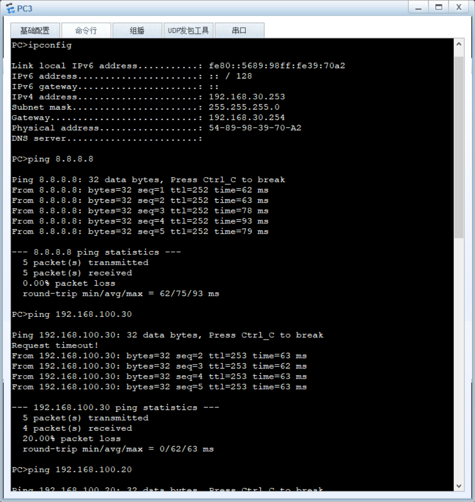 - 三层连通性 :核心层 VLAN 间 ping 测试(如