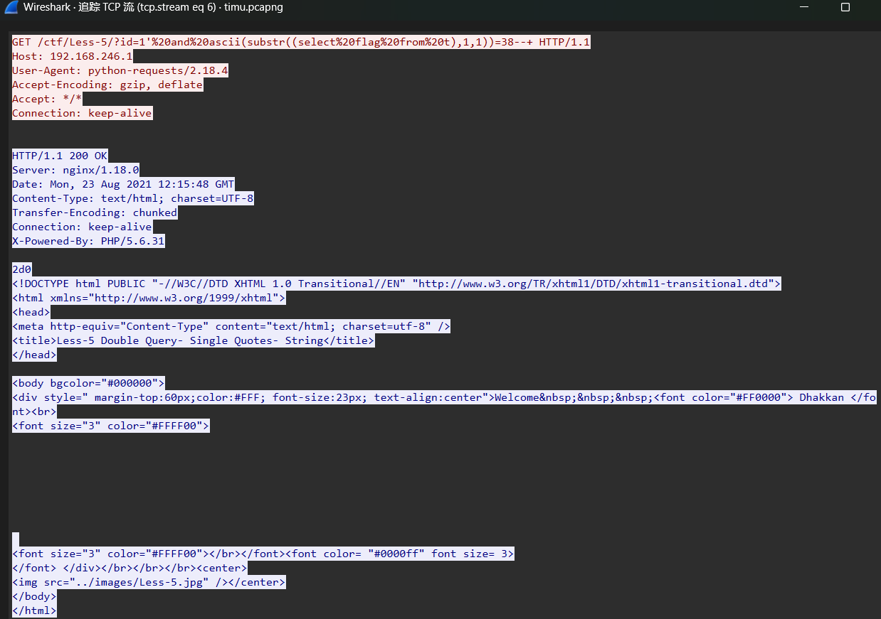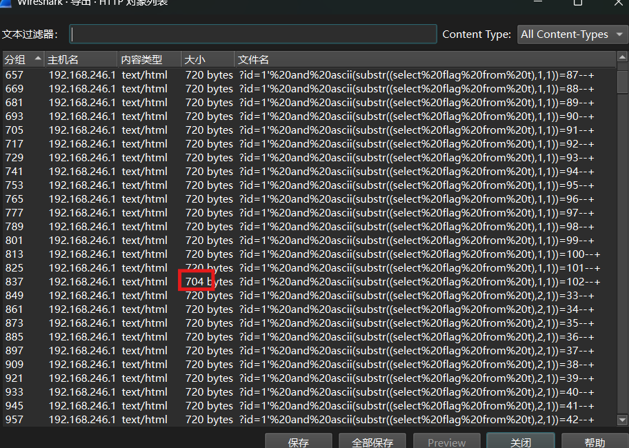 观察发现进行了sql注入,猜测是判断flag的每一个字符。