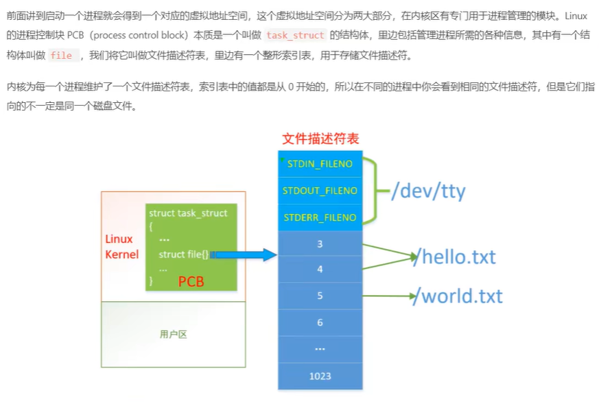 如下图所示为一个文件描述符表,此表为内核中的表。