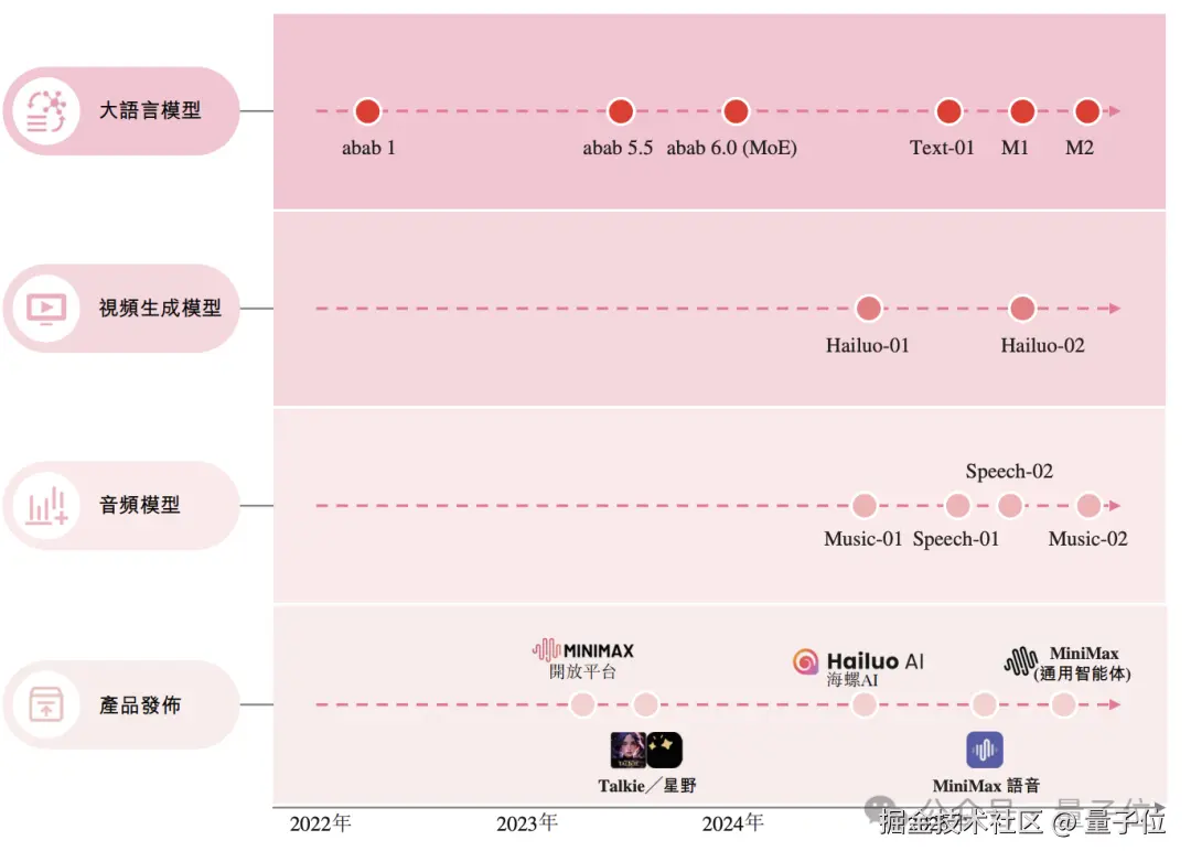 时过境迁,现实成功证明了 MiniMax 选择的这种模式不是广种薄收,而是多个模态齐头并进------技术迭代密集,关键技术突破频率高,是 MiniMax 留给业界的一大印象。