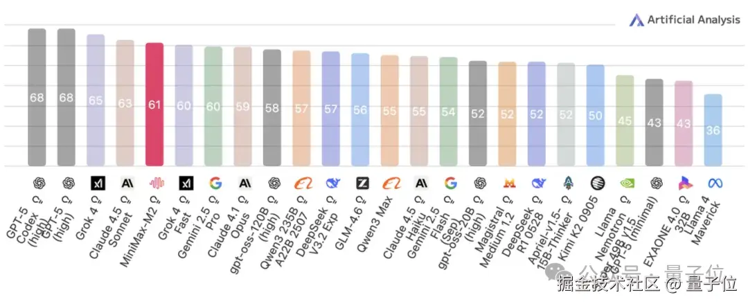 MiniMax M2 发布期间,在 Artificial Analysis 榜单刷新了国产文本模型最高成绩------全球前五,开源第一。