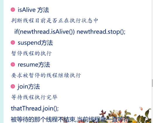 还有join()方法等待的时"线程终止",这个方法的使用契机