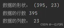 df.shape:返回几行几列(行,列),元组格式,如:(395, 23)。