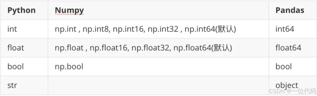 pandas 数据类型指的是某一列所有数据的共性,默认数值型数据类型为 int64 或 float64,文本类型为 object。