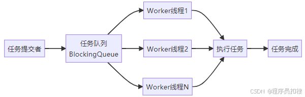 自定义线程池的实现,尤其是工作线程的设计,体现了多线程编程中的资源管理 与任务调度思想。通过"无限循环 + 阻塞队列"的模式,我们能够在保证高性能的同时,实现对线程生命周期的精细控制。