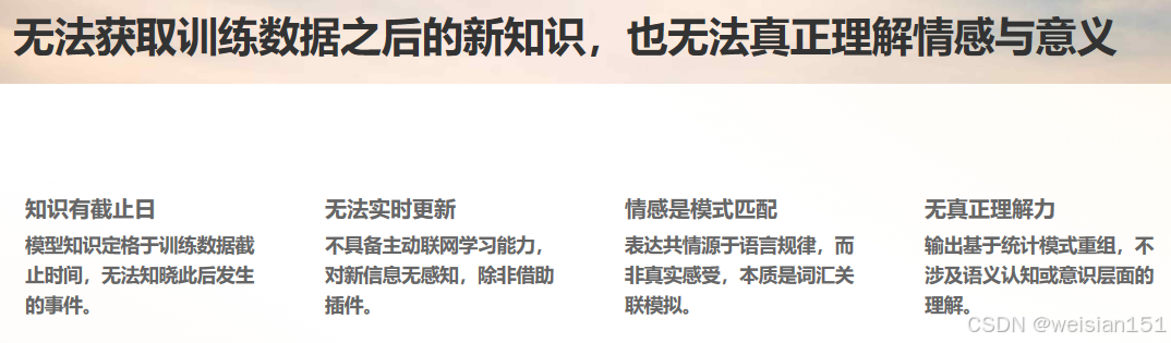 尽管 ChatGPT 很强大,但它依然存在一些无法避免的局限------这些局限,本质上是 Transformer 架构和训练方式决定的: