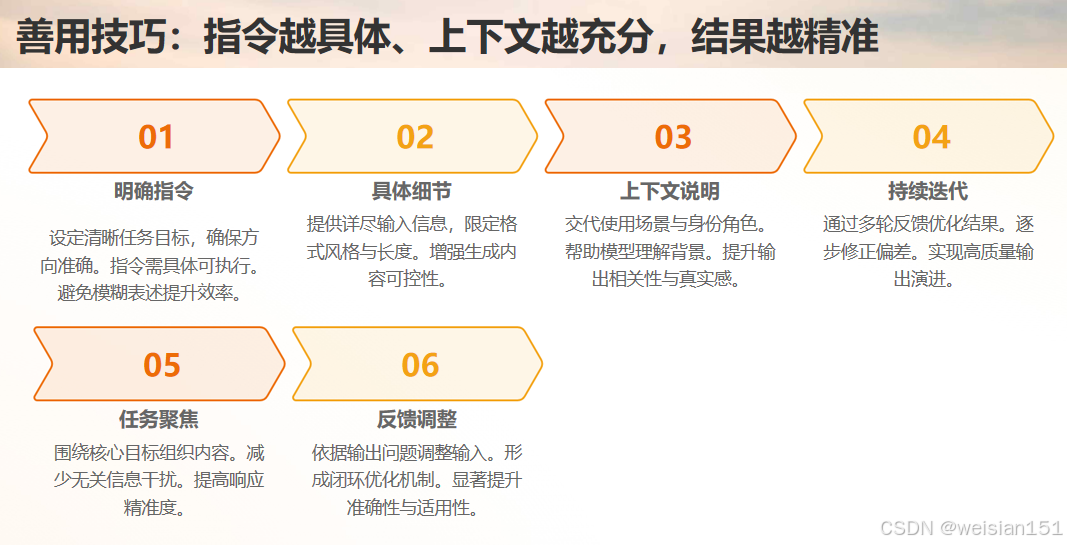 - 明确指令:越具体,结果越好(如"用 Python 写一个冒泡排序,带注释");