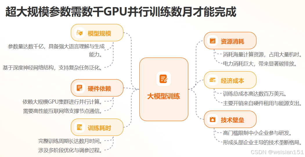 - 数千亿参数,需数千张 GPU 并行训练数月;