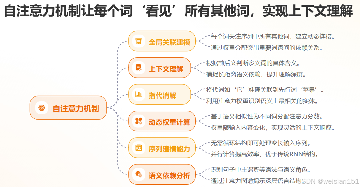 让输入序列中的每个词,都能"看见"其他所有词,并根据相关性动态分配注意力权重。