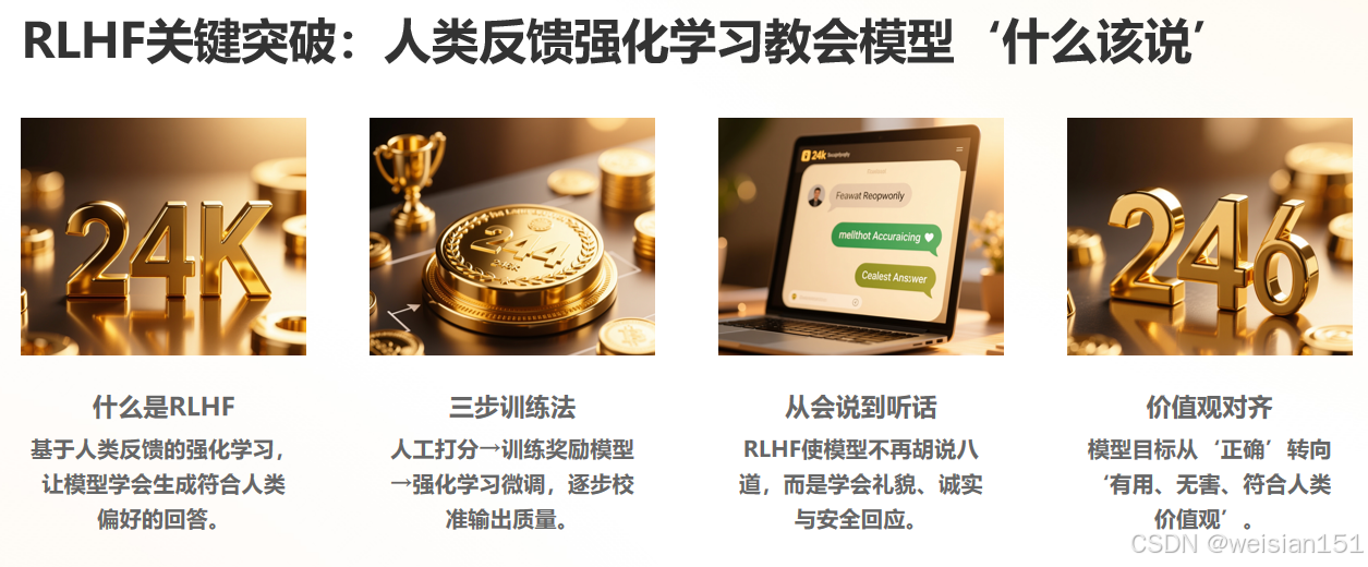 第二步:关键升级------人类反馈强化学习(RLHF):让模型"听话"又"靠谱"