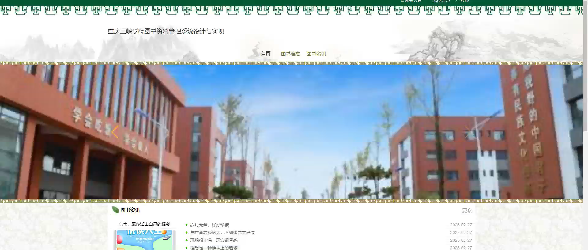 在信息化高速发展的当下,数字化、网络化成为现代图书馆发展的核心方向。重庆三峡学院图书馆作为支撑师生学习、科研与创新的重要平台,传统人工管理模式存在速度慢、信息更新滞后、资源闲置等问题,已无法满足日益增长的师生信息需求。为提升图书馆管理效率、加快数字化管理步伐,基于 Spring Boot 框架开发适配重庆三峡学院的图书资料管理系统成为必然需求。同时,Spring Boot 框架的快速开发、易维护特性,以及 Java、MySQL 等技术的成熟性,为系统开发提供了可靠技术支撑。
