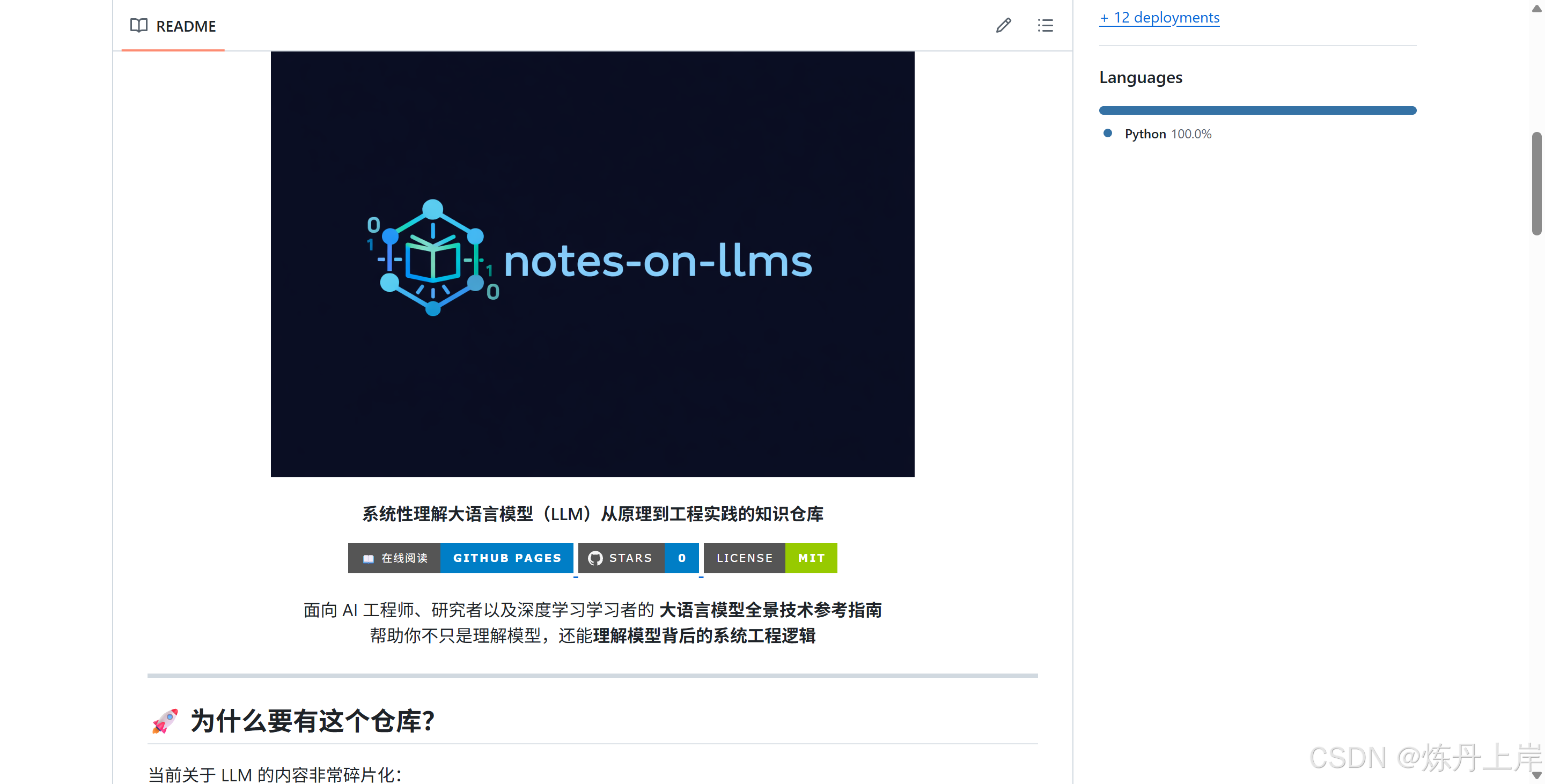 notes-on-llms 不是"一次性写完"的项目,而是一个会持续更新的知识工程。我也把博客与仓库打通:博客更易读,仓库更结构化,站点更利于检索与复用。(GitHub)