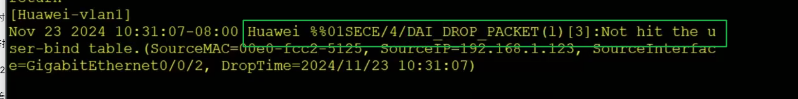 再vlan下启用user-bind报表检查(也可以在接口下,但是范围更小一些)