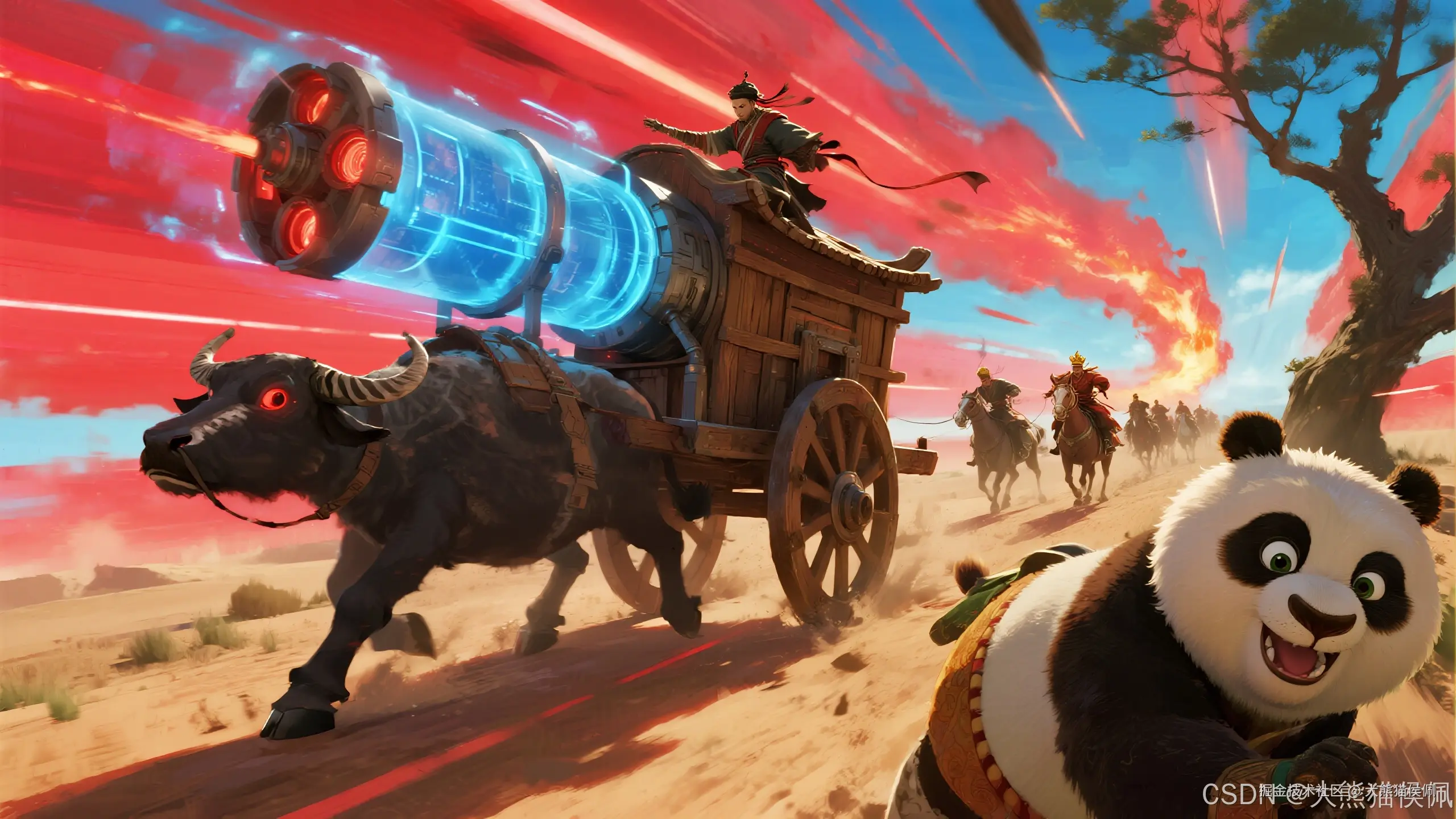 突然,天地变色。远处的数据流卷起狂沙,一支装备精良、杀气腾腾的皇家骑兵队(高优先级任务)呼啸而来,却被这辆破牛车死死挡在了单行道上。
