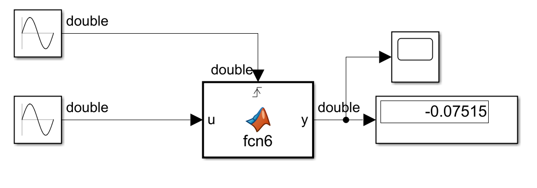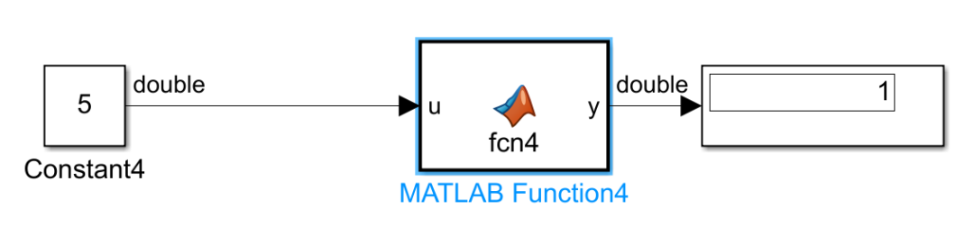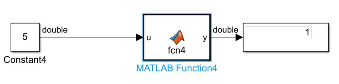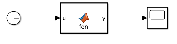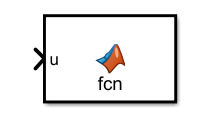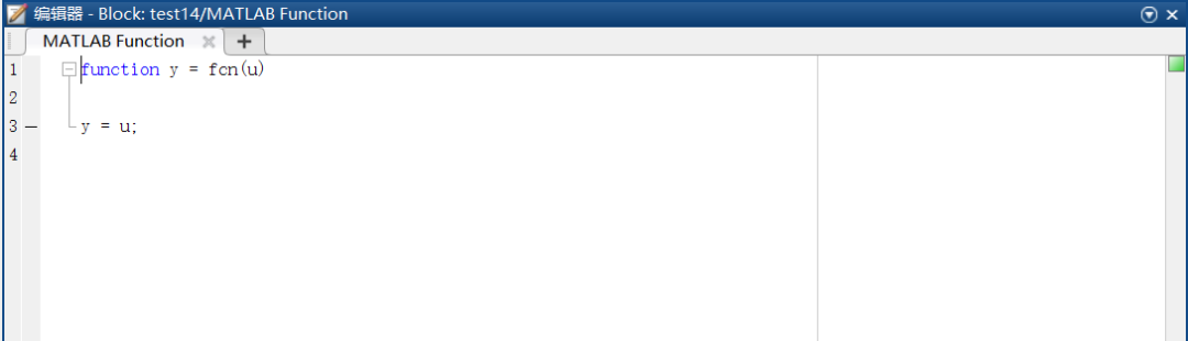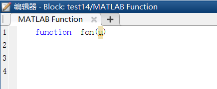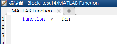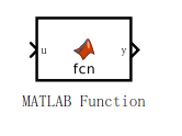 此模块的特殊之处在于双击之后打开的不是参数对话框,而是一个M代码编辑窗,在这里编写M代码描述输出y与输入u之间的关系。模块拥有1个输入端口u和1个输出端口y。MATLAB Function的模块的图标上绘制一个MATLAB logo图案,如图所示。