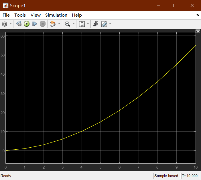 经过10 s共11个采样点后,结果累加到55,等同于sum([0 : 10])。使用persistent变量时需要注意: