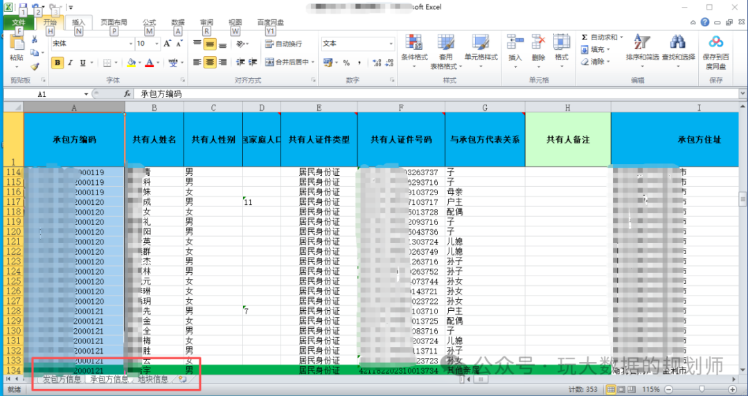 原始数据我们要求的不高,需要前后数据有:发包方表、承包方家庭成员表、地块信息表。
