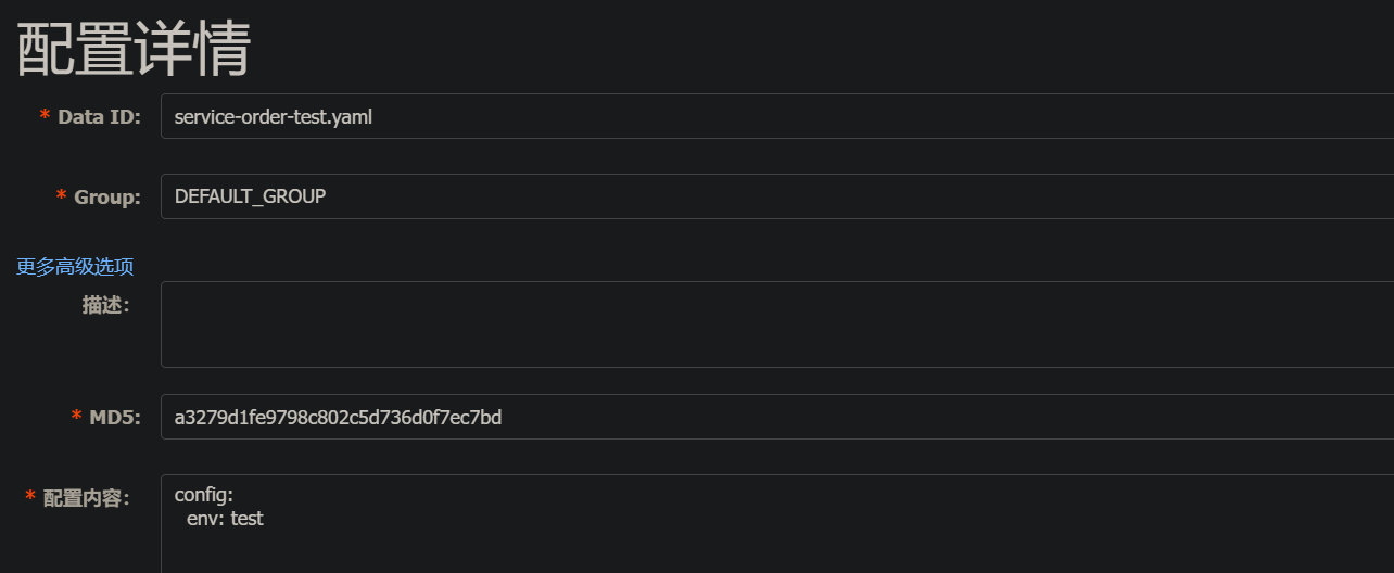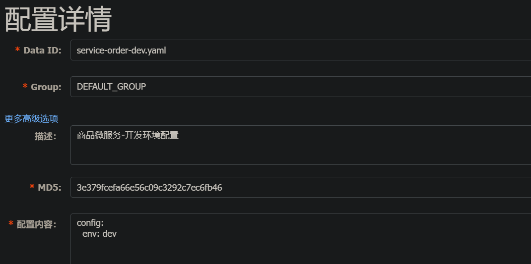 将application.yml中的所有配置信息, 复制粘贴到配置内容中发布即可。 - 将application.yml中原有的配置全部注释掉;