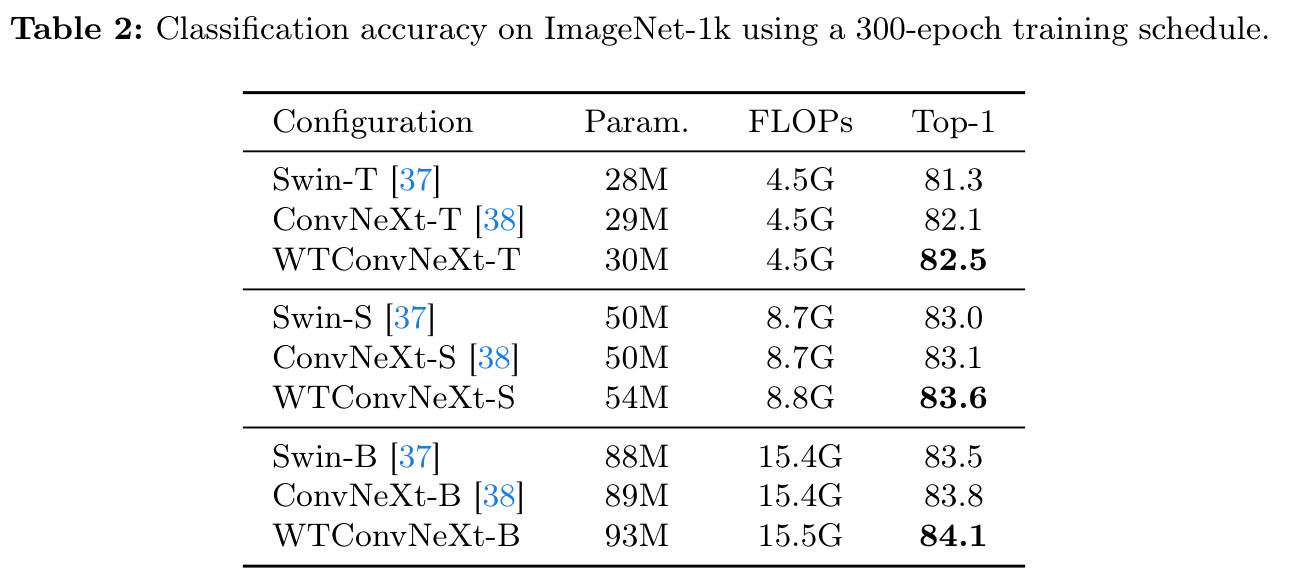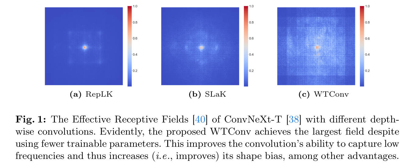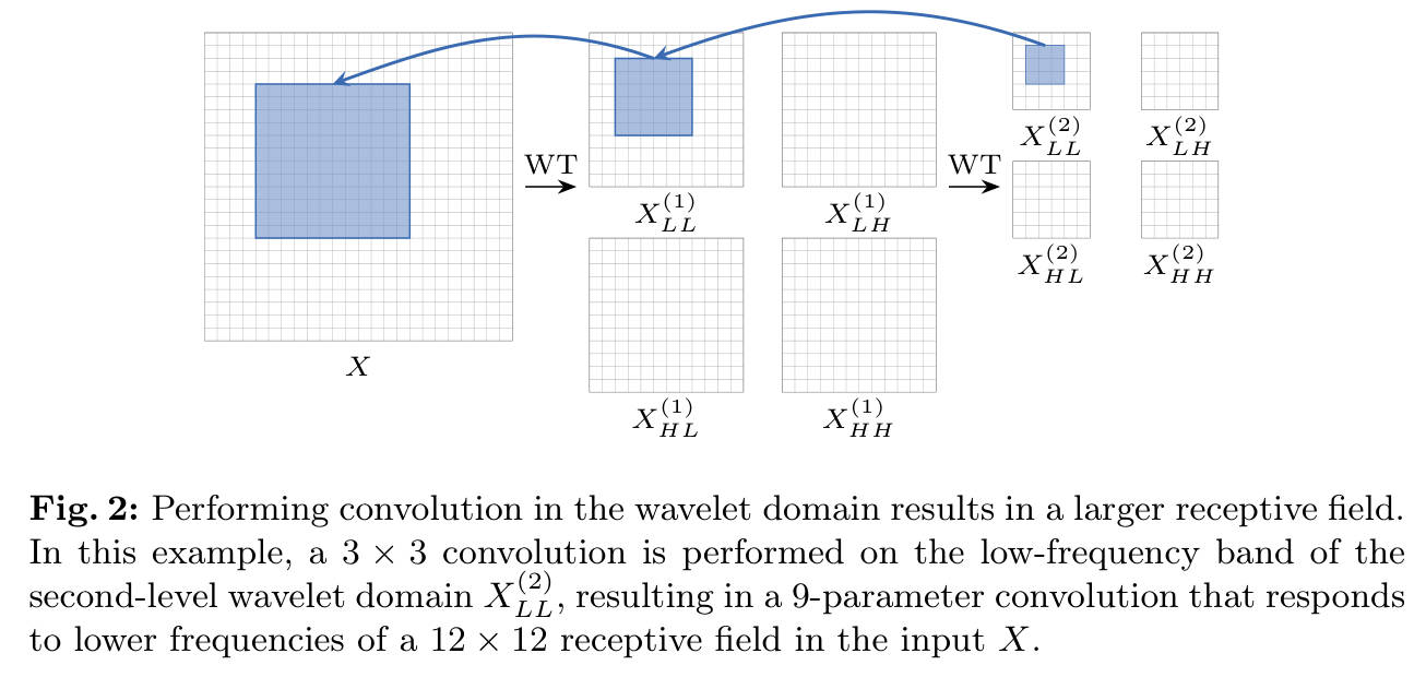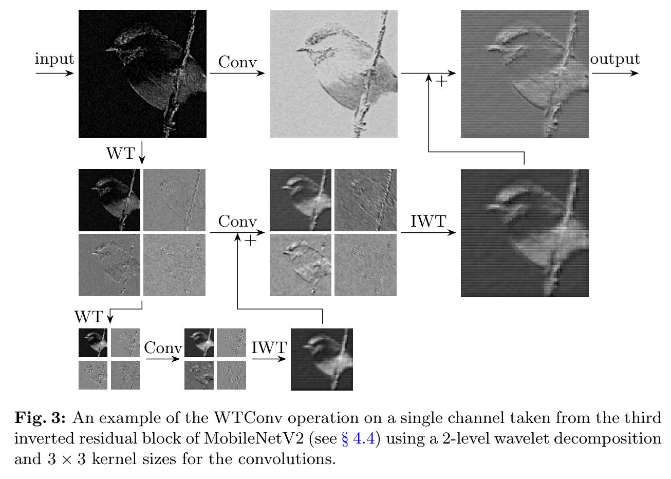 - 基于小波的卷积层 (WTConv):提出了一种利用小波变换进行多频率处理的新型层,作为深度卷积的通用替代品。