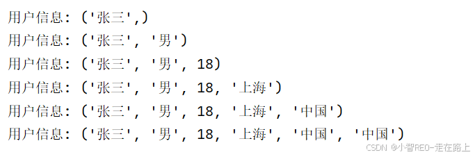 位置传递注:传进的所有参数都会被args变量收集,它会根据传进参数的位置合并为一个元组,args是元组类型;