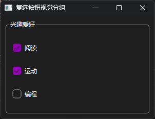 QGroupBox *hobbyGroup = new QGroupBox("兴趣爱好");