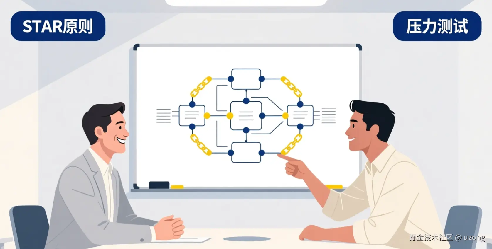 - 组合拳追问:一个问题连环深挖,直到触及底层逻辑。比如从"你怎么优化接口性能?"一路问到缓存策略、数据库索引、网络传输开销。