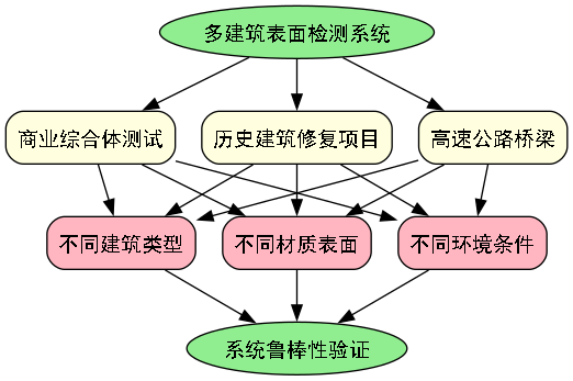 为了验证系统的实用性,我们在多个实际建筑物上进行了测试应用,包括一座商业综合体、一座历史建筑修复项目和一座高速公路桥梁。这些案例涵盖了不同建筑类型、不同材质表面和不同环境条件,全面检验了系统的鲁棒性。