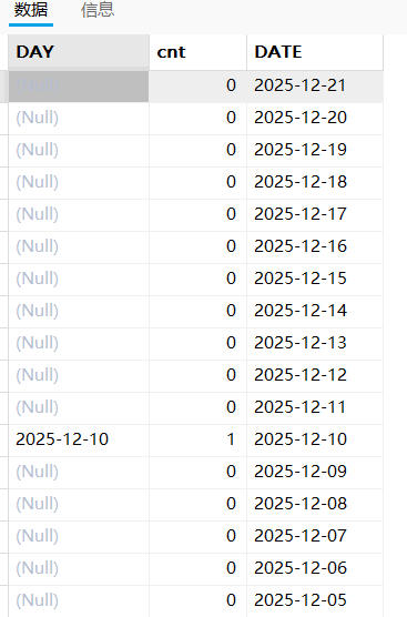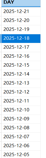 这部分是将@DATE日期-1,并赋值给@DATE,下一次继续-1,赋值给@DATE,直到计算 出30天日期