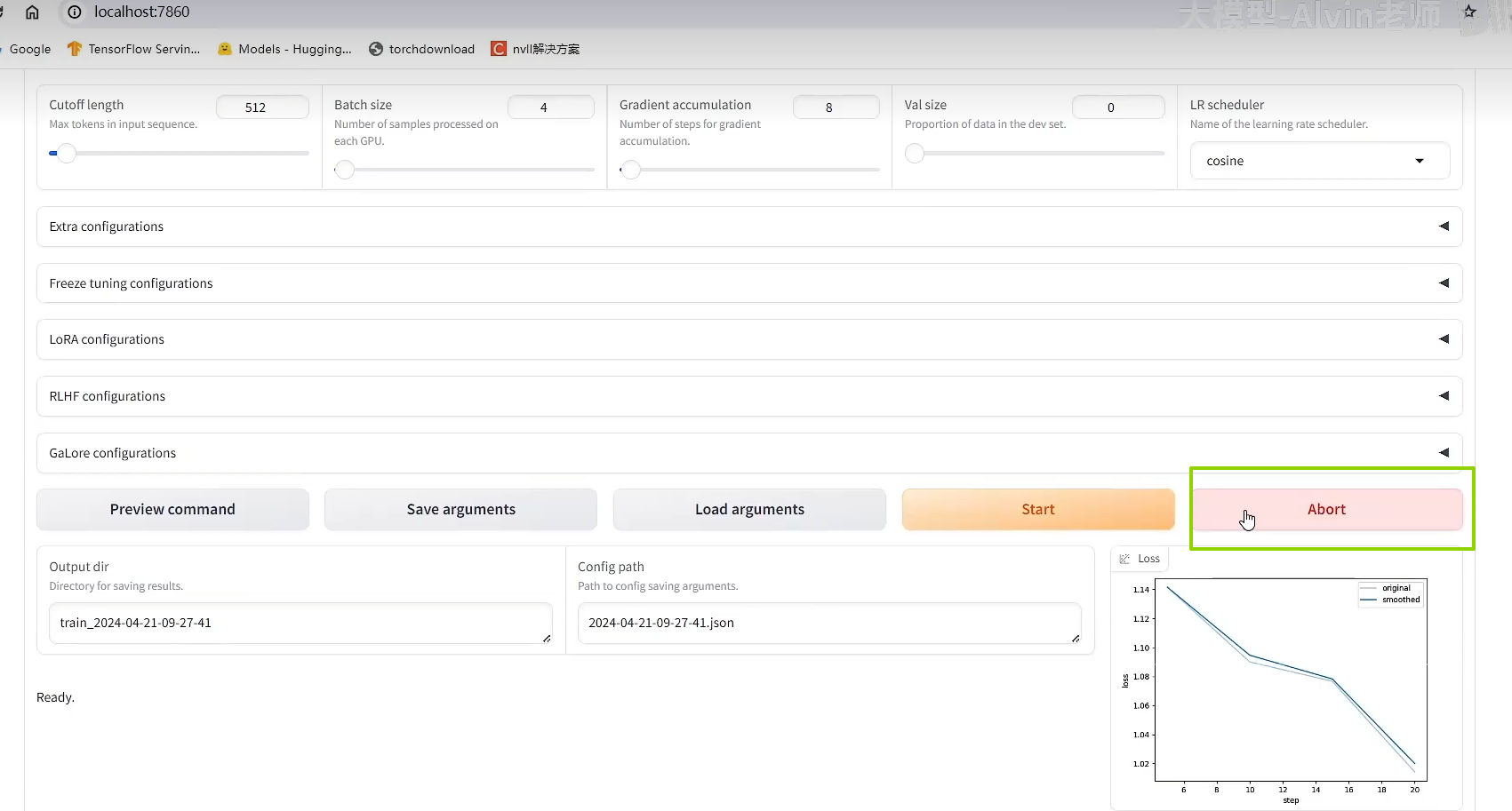 Abort里面可以加载模型和导入模型,上面训练完成后,可以通过这里导出模型,然后加载模型检测训练的效果。